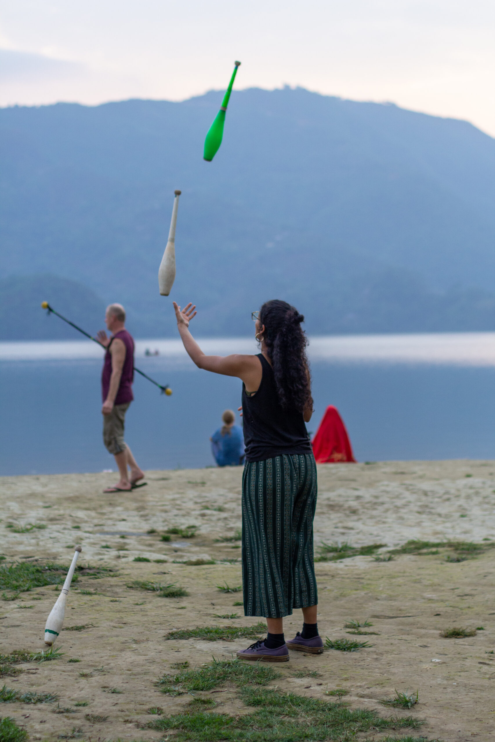 Floris first traveled to Nepal in the year 1999 and returned many times, not only for travel but also for IT work, including five months living in Patan, just south of Kathmandu. His love for Nepal stayed over time and in 2015, a trip to Nepal with some hula hoops led to a spontaneous, week-long jam in Pokhara, followed by gatherings in 2016 and 2017—a full week of Flow Arts Jam, just next to our current event location.